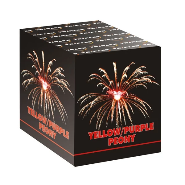 Varázsolj lenyűgöző látványt az égboltra ezzel a különleges tűzijátékkal! A Yellow Purple Peony egyszerre bocsát ki ragyogó sárga és lila pünkösdi- vagy virágformákat, ami igazán színes és emlékezetes élményt nyújt.